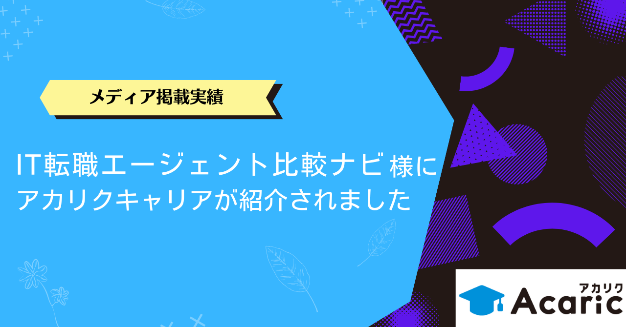 【メディア掲載実績】「IT転職エージェント比較ナビ」様にアカリクキャリアが紹介されましたメディア掲載2025.07.022025.06.12エンジニア就活様のIT転職コラムにご掲載いただきました。掲載ページ:IT転職サイトおすすめ21選|ランキングTOP11と厳選10社を徹底解説IT転職エージェントおすすめランキング30社を比較【2025年7月最新】エンジニアに独自調査したアンケート付き