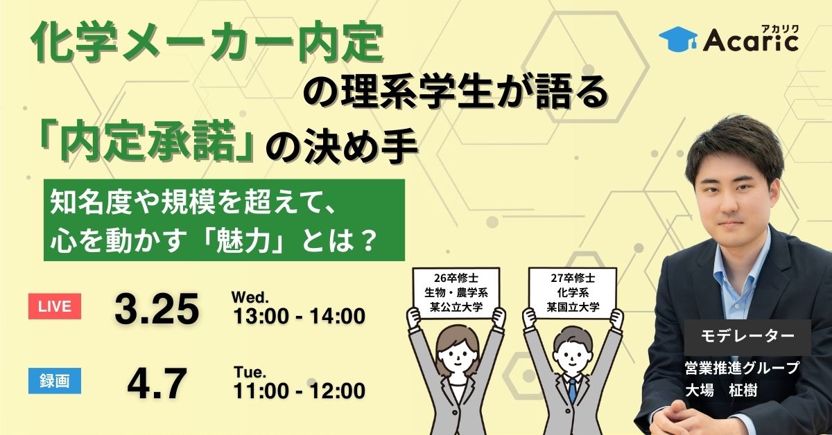 Webセミナー 化学メーカー内定の理系学生が語る「内定承諾の決め手」