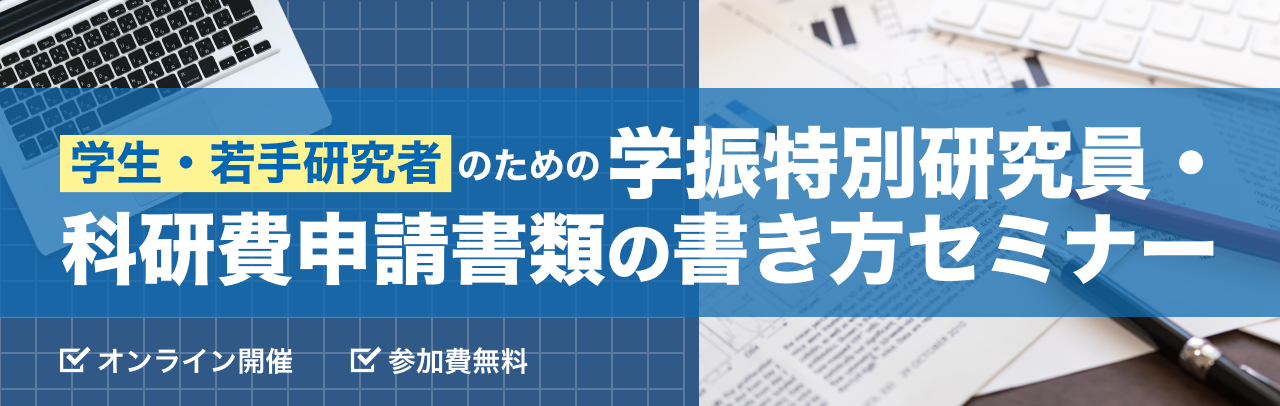 学振特別研究員および科研費の申請について体系的に学べる特化型セミナーです。
