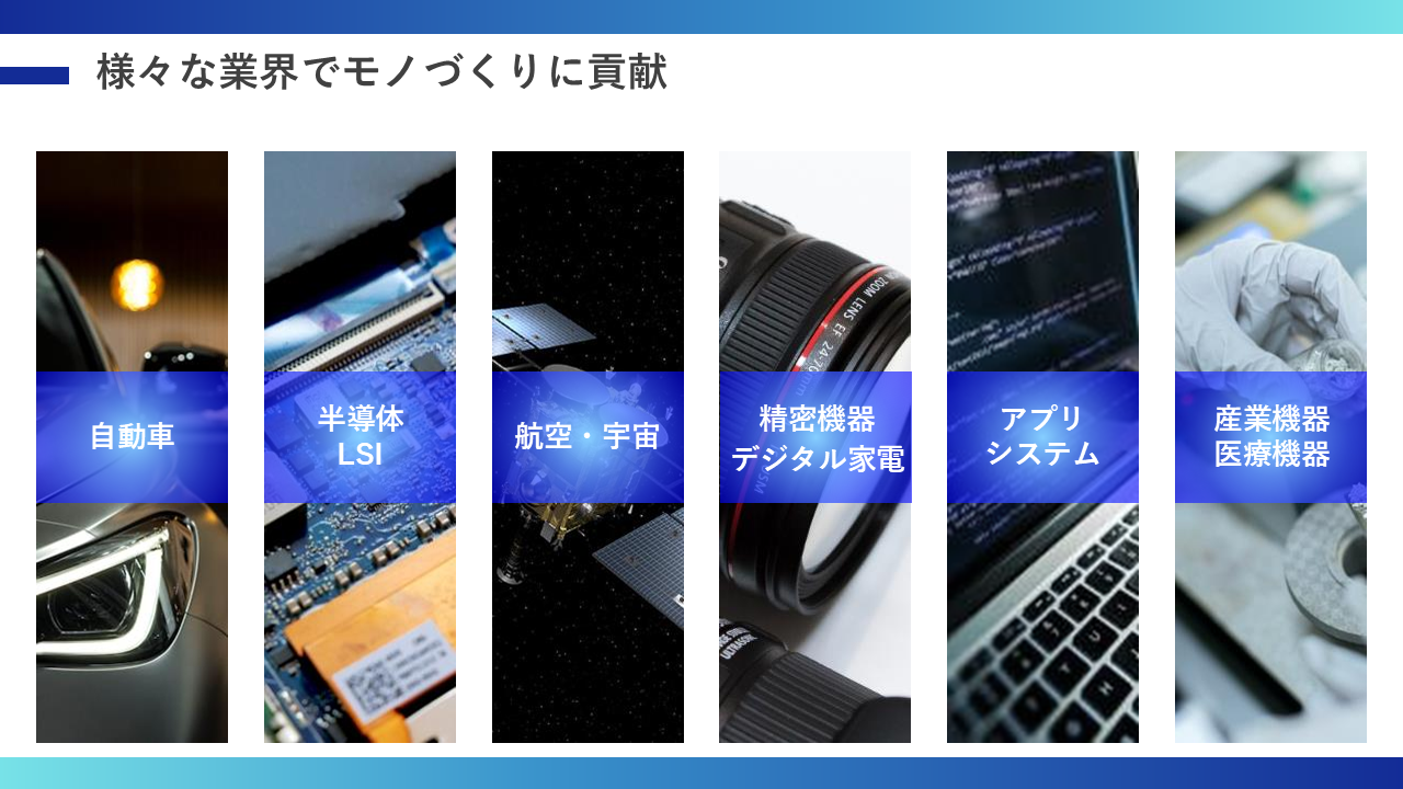 当社では、理系出身者の専門性をいかせるプロジェクトが多数稼動しており、 研究内容と実務が直結するキャリアパスを描くことができます。 特に機械・電気・ソフトウェア・化学のような分野を専攻してきた方が、最前線で活躍しています。
