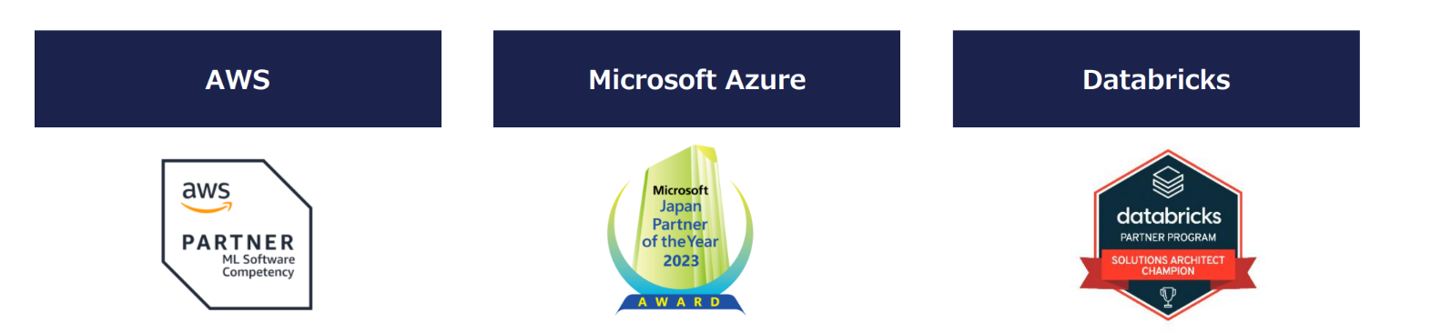 ≪生成AIを含むクラウドAIを駆使し、企業のDX推進を支援≫ 『AI×クラウド事業』『VR・AR事業』『Education事業』の3つの事業領域で培ったソリューションの提供を通じて、社会や企業のDX推進を支援している当社。2019年には、アマゾンウェブサービス(AWS)の国内初の「AWS Machine Learning コンピテンシー」パートナーに認定されました。生成AI分野では2021年から研究を開始し、2023年には、日本全国で1万事業所を超えるマイクロソフト社のパートナーの中から1社が選ばれる「Microsoft Japan Partner of the Year 2023 AI Partner Award」を受賞。また、Azure Open AI Serviceを活用した顧客の戦略的なデータ利活用において、優れた実績を挙げたパートナーとして評価をいただいています。
