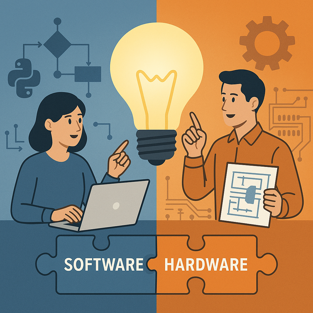 技術第1部では、電気回路設計、ソフトウェア設計、機構設計の各担当者が少人数でチームを組み、商品企画の初期段階から完成・商品化に至るまで一貫して開発を行っています。それぞれの担当が専門分野を持ちながらも、商品開発においては他分野担当者との密接な協働が不可欠です。実際のプロジェクトでは、ソフト担当がハードの都合を理解し、ハード担当がソフトの要件を考慮した上で意見交換や設計調整を行う場面が頻繁に訪れます。この過程で自然とソフトウェアとハードウェアの両面に関する知識とスキルが身につき、分野横断的な視点を持った技術者へと成長することができます。 一方、技術第2部では、社会課題の解決を目指し、展示会や各種イベントで新たな商品や技術の探索を行っています。発見した商品や技術を自社の仕様や市場ニーズに合わせてカスタマイズし、より魅力的な商品として市場投入することが重要な役割となります。ここでは組込み開発が主な業務ですが、商品によっては機構設計や筐体のカスタマイズも求められるため、ソフトウェアだけでなく機構やハードに関する知識も必然的に求められます。そのため、新しい開発案件ごとにソフト・ハードの両面理解が深まり、それぞれの技術領域に横断的な知見を蓄積できます。 このように、技術第1部・第2部のいずれにおいても、ソフトウェアとハードウェアの分野を超えた知識とスキルの重要性が高まっており、日々の業務の中で自然と相互理解が深まる環境があります。そのため、単一分野にとどまらない総合力のあるエンジニアとして成長できるのが大きな魅力です。