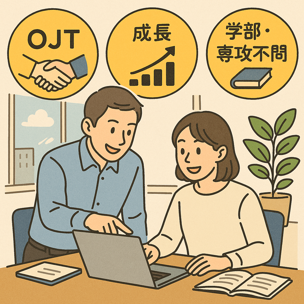 当社では、学部や専攻が異なる未経験の方でも一線で活躍できるよう、充実したOJT(On the Job Training)体制を整えています。入社後は、まず基礎から実践までを丁寧に段階的に学ぶことができるため、どんなバックグラウンドを持つ方でもスムーズにキャッチアップが可能です。 配属後は、経験豊富な先輩社員がメンターとしてマンツーマンでサポート。業務知識や技術的な基礎にとどまらず、実際のプロジェクトの進め方や課題解決の思考法まで、実践のなかで一つひとつ丁寧に伝えていきます。「分からない」「初めて」の壁にぶつかったときも、先輩が隣で一緒に課題を乗り越えてくれるため、不安なく新しい業務に挑戦できます。こうした手厚いOJT環境により、多くの若手社員が未経験の分野でも着実に力を付け、現場で大きな戦力として活躍しています。 また、「自分の学んできた研究領域と会社の事業フィールドが違うけれど大丈夫だろうか…」という不安を持つ方もいるかもしれません。しかし心配はいりません。実際、当社では全く異なる分野を学んできたメンバーも、基礎から徹底的にOJTで育成され、プロフェッショナルとして活躍している事例が多数あります。知識やスキル以上に、「やってみたい」「新しい分野にチャレンジしたい」という意欲が、会社の成長とともに社員の成長をも後押ししています。 現場では、OJTで得られた知識・ノウハウをすぐに実務で試すことができるのが特徴です。必要に応じて先輩から直接フィードバックを受け、その場で疑問を解消しながら自信を持って次の業務に取り組めます。さらに、わからない点や悩んだことも気軽に相談でき、着実に一歩ずつスキルを身につけていくことができます。 「未経験だから…」「専攻が違うから…」と自分の可能性を狭める必要はありません。当社では一人ひとりの成長意欲をサポートするための環境とメンター制度があり、どんなバックグラウンドからスタートしても、本気で学び、成長できるチャンスを用意しています。自分の未来を切り拓きたい皆さん、ぜひ新しいフィールドで、私たちと一緒にチャレンジしてみませんか?どんな方でも一歩ずつプロフェッショナルとして羽ばたける環境が、ここにはあります。
