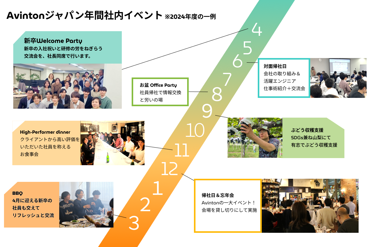 Partyや帰社日、BBQなど、年間イベントは盛りだくさん!普段は話せない人とも交流でき、新しい発見があります。 楽しみながら仲間とのつながりを広げられるのがポイントです。