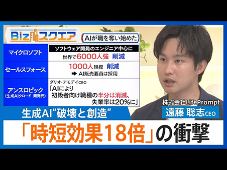 2025年6月7日、TBS『Bizスクエア』において弊社の取り組みをご紹介いただきました。 番組内では、さまざまなテーマについてお話しさせていただいています。 - いつも社様とのAIプロジェクト - 大学受験×AIプロジェクト - 生成AIの普及の現在(スタジオ議論) 詳しくはYoutube動画でも見ることができます。 https://youtu.be/djv_QTBH9eM (2025年11月時点で、45万回再生を達成。)
