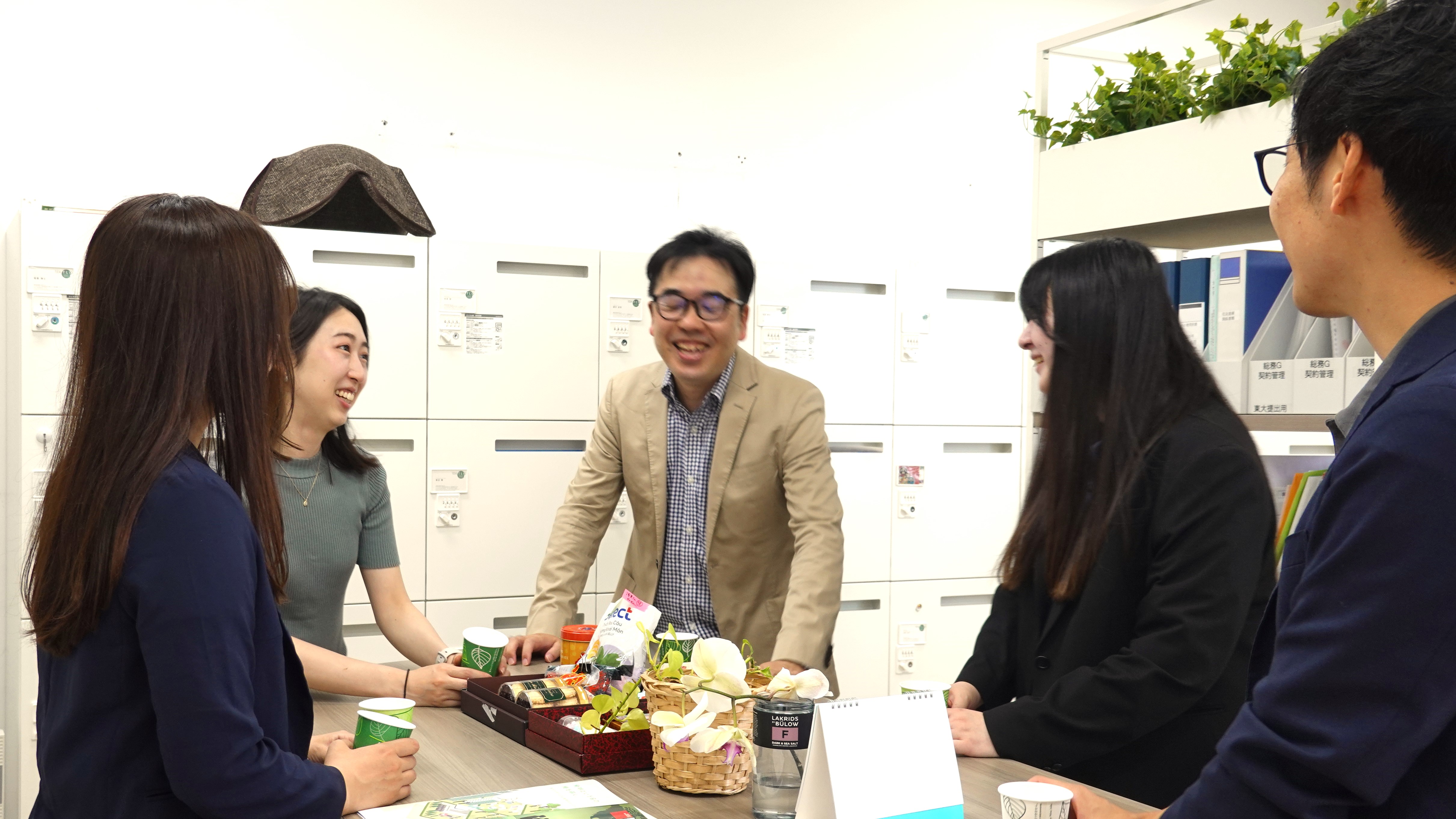 私たちにとって初めて知る難解な先端技術を取扱うことも珍しくありません。 このため、わからないことがあればその知識を持つ人に質問をし、逆に質問をされたら喜んで協力する、そのやりとりに先輩・後輩、上司・部下の壁はありません。 他のメンバーが今どのような技術を取り扱っているのか、そのマーケティングの状況は?得た情報で自分の知識を深めたい、そんな好奇心旺盛なメンバーが集まっています。