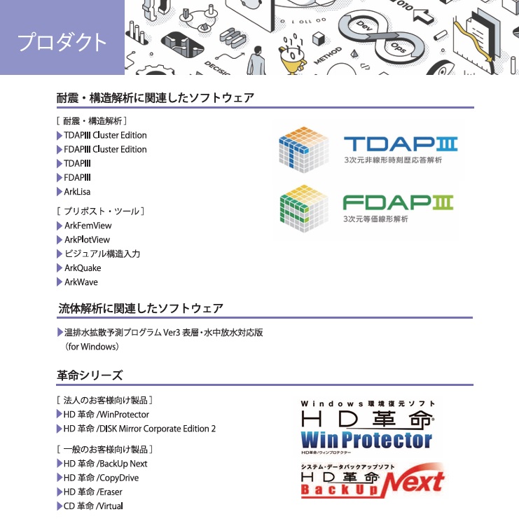 アーク情報システムが得意とする分野は数値解析(構造解析・流体解析)/画像解析/AI/並列・高速化/クラウド型業務システムと多岐にわたりますが、この広い事業領域は戦略として『高度な技術を要し』かつ『先進であるもの』にこだわってきた結果。安価に技術を提供するのではなく、技術でお客様から請われる存在を目指しています。